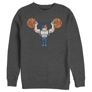 • Strut your stuff with this stylish new men's graphic crewneck sweatshirt that is perfect for every occasion! Featuring the swole cat Meowscles lifting a weight made from two balls of yarn across the front.