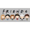 Chandler wants to know, "Could this officially licensed Friends style BE any cooler?" Head to Central Perk with your favorite friends Ross, Rachel, Monica, Phoebe, Chandler, and Joey, and relive the beloved '90s sitcom! No one will think you're the "smelly cat" while rocking this Warner Brothers Friends Chibi Characters Men's Gray T-Shirt design that features characters like Chandler, Phoebe, Joey, Monica, Rachel, and Ross as cute cartoon characters along with the Friends logo.