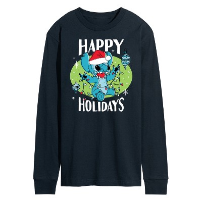 Men's Garfield Happy Holidays Wreath Long Sleeve Graphic T-Shirt - Navy - X-Large