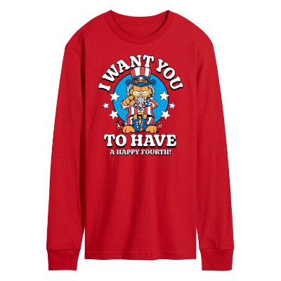 Garfield - Happy Holidays Wreath - Adult Long Sleeve Tee - Bring the humor and laziness of the famous orange cat to your wardrobe with Garfield graphic apparel. Featuring Garfield, Odie, and Jon, these designs celebrate the iconic comic strip and its beloved characters.