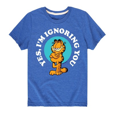 Garfield - Ignoring You - Men's Long Sleeve T-Shirt - Bring the humor and laziness of the famous orange cat to your wardrobe with Garfield graphic apparel. Featuring Garfield, Odie, and Jon, these designs celebrate the iconic comic strip and its beloved characters.