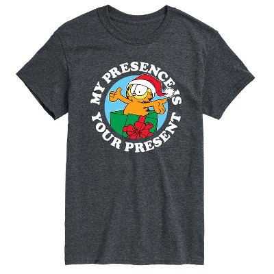 Garfield - My Presence Is Your Present - Adult Long Sleeve Tee - Bring the humor and laziness of the famous orange cat to your wardrobe with Garfield graphic apparel. Featuring Garfield, Odie, and Jon, these designs celebrate the iconic comic strip and its beloved characters.