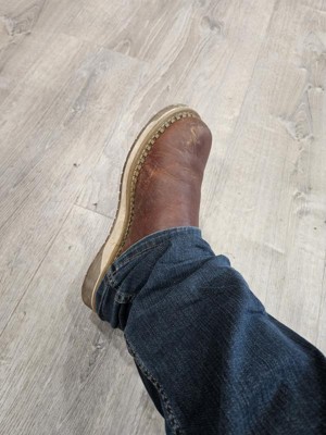 I bought these boot 4 month’s ago. Having always had 6” lace-up work boots I was skeptical but wanted to give these a try. I usually wear a size 11, which is what I ordered without trying these on 1st. Initially, when I tried them on I was very concerned. They were extremely tight fitting on the top of my foot, to the point where I almost gave up on them. When I say tight on the top, I mean really tight, although I could still wiggle my toes. I tried thinner socks, which helped the top of my foot pain, but this made my heal slip a little. I then added an arch support in-sole underneath the stock in-sole which seemed to help the heal-slip. After about 3-4 weeks the top of my foot started to feel better as the boots began to get broken in and the leather loosened up a bit. I then was able to go back to a thicker sock, which is what I prefer. One thing worth noting about my experience is the top of foot pain was more pronounced when sitting, when there was hardly any weight on the amply cushioned stock in-sole. I usually spend about 1/2 my day sitting and 1/2 in the field so that probably prolonged the break-in period a bit. Now that I’m 4-months in I couldn’t be happier with these boots, they are very comfortable. They seem durable too, the leather has been slashed by sharp objects a few times and they still stay dry in wet weather. I do enjoy being able to slip them on in a few seconds rather then going through the whole lace-up routine, ain’t nobody got time for that! Also worth noting, I’m not sure of the cause but I never experienced any foot odor issues until wearing these boots. It’s not outrageous or anything (I think) but is something to be aware of. Overall, a great work boot I would recommend to others, just don’t get discouraged while you’re breaking them in, it will be worth it in the end.