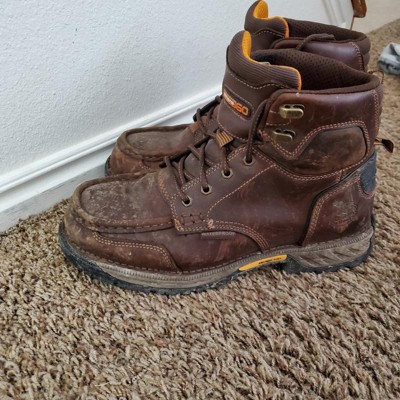 With a moc-toe toe profile and supreme comfort the original Athens are known for, the Athens 360 collection is designed to take on rugged job environments. Built with a 360-degree stitch-out construction, this 6-inch, defined heel work boot also features a reinforced toe stitch to prevent sole separation.This waterproof lace-up work boot has a premium SPR leather upper with a padded collar and combination hardware. Stretch Gusset technology allows for easy pull on of the boot and keeps the padded tongue in place.The interior is equipped with the Georgia Waterproof System and lined in a soft, performance mesh material. It has a removable Comfort Core Next Gen memory foam insole for all day comfort.Below the insole is a fiberglass shank and a shock-absorbing EVA midsole. Next is a TPU Anchor Disk that provides additional arch support and stability. Finally, the CTR rubber outsole is made from our proprietary blend of rubber giving it excellent heat, oil, slip, abrasion and resisting properties. This men's lace-up work boot meets ASTM F2892 electrical hazard standards for soft toe safety footwear.