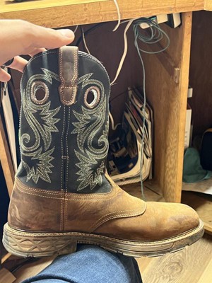 A lightweight and flexible fit that bends to meet the hefty demands of your day. The Carbo-Tec FLX waterproof pull-on is Georgia Boot's newest 11-inch square toe western work boot. It features our ultra-comfortable AMP (advanced memory polyurethane) insole. This 11-inch full-grain leather brown pull-on Western boot is equipped with leather pull loops and our FLX-FIT technology on the rear for easy on and off. Inside, you will find a high performance mesh lining and the Georgia Waterproof System. Our waterproofing is guaranteed to defend against water coming into your boot when working in wet conditions. The EVA midsole, the double-wide fiberglass Shovel Shank XL, and the rubber outsole are attached to the upper through a flexible Cement Construction. Our Carbo-Tec outsole is not only oil and slip-resistant but possesses great abrasion, and heat resistant properties as well. This boot meets ASTM 2892 electrical hazard standards for soft toe work footwear.