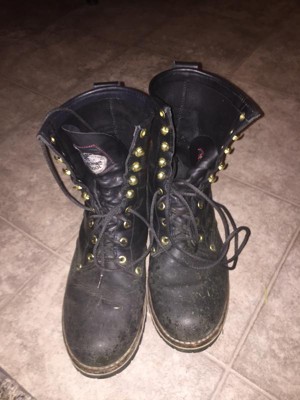 Georgia Logger Work Boots:Men are constantly looking for work boots that have great durability but are still comfortable to wear. This 8 Georgia Logger's upper was crafted with full-grain leather; it has a strong-looking black hue, while the material has superb hardiness, it is also outstandingly soft. This men's work boot has a lace-up design, this is great because it allows you to adjust the fit. Don't worry about the stud hooks being yanked out while you're working, they have been attached to steel washers. This Georgia Logger was made with welt construction. Assembling the footwear this way is rather beneficial for you; it enhances the footwear's overall durability and strength, plus it allows you to have your worn down outsole completely replaced by a shoe repairman. Within the interior, there is a cushioned insole that has been covered in a soft fabric; you will become quite fond of how much cushioning it provides and how comfortable it will keep your feet throughout the day. A steel shank is an outstanding feature to have in this black Logger; it is especially useful in helping you to have steady footing and it supports your foot's arch. On the bottom of this footwear there is a Georgia Logger outsole; it has been made from rubber, it has fantastic durability and it resists abrasions nicely. While these Georgia Logger Work Boots have terrific durability, they also have features that will help keep your feet comfortable throughout your shift. If you are looking for a new pair of boots, these #G8120 are an excellent option.