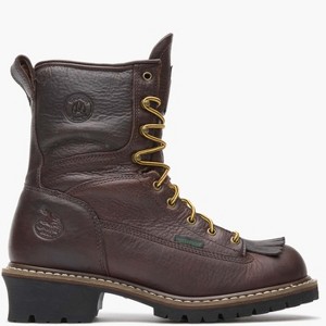 The Georgia Waterproof Logger Boot keeps your feet dry and provides comfort and durability.This boot features an abrasion-resistant rubber outsole, standard on all Georgia Loggers. It's made with welt construction for added quality and durability.Built with the Georgia Waterproof System, this logger stands up to rain and mud. Air gets in, but water can't. There's a 100 percent guarantee that your feet stay dry.It's also comfortable with a covered cushion insole and a fully-lined and cushioned collar. Support comes from a steel shank and a removable polyurethane orthotic insert.The brush guard kiltie is removable on this full-grain leather 8 boot. The logger also features solid stud hook and eyelets set on steel washers.