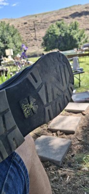 My husband loves all of his Georgia Boots, but this new black pair smells like dye so bad that they have been sitting outside all week and still smell too strong to bring inside much less wear.