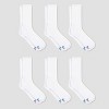A: I'm looking at the label for Hanes, X-Temp, Premium, Ultra Cushion, Crew and it states 65% Cotton, 29% Polyester, 5% Natural latex rubber, 1% Spandex