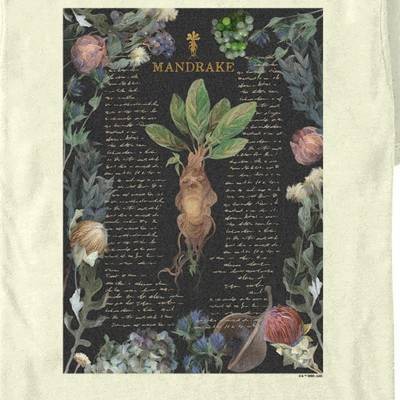 Unlock magical secrets hiding in the closet under the stairs with this officially licensed Harry Potter Mandrake Root Recipe Men's Graphic T-Shirt! Head back to Hogwarts in style with this cool men's classic tee that shows off an adorable sleeping Mandrake root, surrounded by watercolor flowers, fruit, and a magical potion's recipe in yellow script across the front! And, just remember, the spell is Wing-gar-dium Levi-o-sa and NOT Wingardium Leviosa!