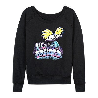 Hey Arnold! - Airbrush Arnold - Men's Crew Neck Fleece Pullover - Rock your style with Hey Arnold! graphic apparel. Featuring Arnold, Helga, and the gang, these designs bring the heart and humor of this beloved animated series about growing up in the big city.