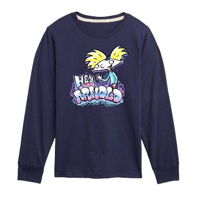 Hey Arnold! - Airbrush Arnold - Men's Long Sleeve T-Shirt - Rock your style with Hey Arnold! graphic apparel. Featuring Arnold, Helga, and the gang, these designs bring the heart and humor of this beloved animated series about growing up in the big city.
