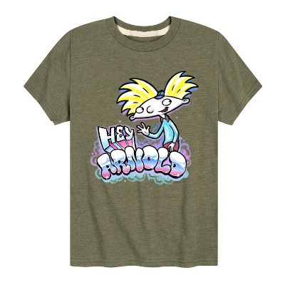 Hey Arnold! - Airbrush Arnold - Men's Short Sleeve Graphic T-Shirt - Rock your style with Hey Arnold! graphic apparel. Featuring Arnold, Helga, and the gang, these designs bring the heart and humor of this beloved animated series about growing up in the big city.