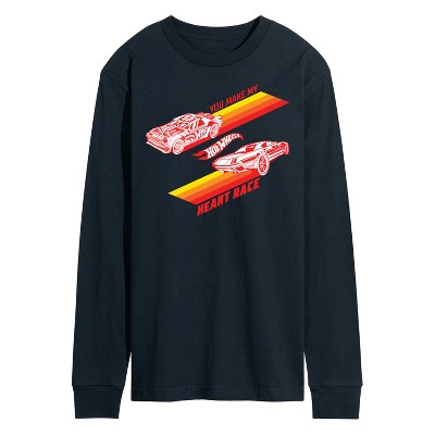 Hot Wheels - Loop And Car Logo - Men's Long Sleeve T-Shirt - Speed into bold style with Hot Wheels graphic apparel, featuring high-octane designs that showcase legendary cars like the Twin Mill, Bone Shaker, and other fan favorites. Each piece captures the adrenaline-pumping excitement of epic tracks, jaw-dropping stunts, and non-stop racing action. Perfect for fans of all ages who grew up launching cars off orange tracks and collecting miniature speed machines, this collection brings the thrill of Hot Wheels to your everyday look with energy, nostalgia, and unmistakable style.