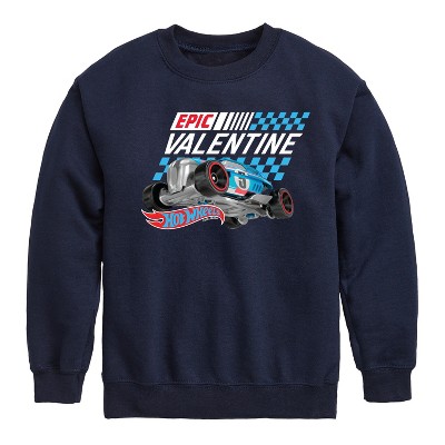 Hot Wheels - Valentine's Epic - Men's Crew Neck Fleece Pullover - Speed into bold style with Hot Wheels graphic apparel, featuring high-octane designs that showcase legendary cars like the Twin Mill, Bone Shaker, and other fan favorites. Each piece captures the adrenaline-pumping excitement of epic tracks, jaw-dropping stunts, and non-stop racing action. Perfect for fans of all ages who grew up launching cars off orange tracks and collecting miniature speed machines, this collection brings the thrill of Hot Wheels to your everyday look with energy, nostalgia, and unmistakable style.
