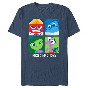 It's time to start making happy memories with exciting new officially licensed apparel for the whole family from Pixar's beloved film Inside Out! This Men's Pixar Inside Out Emotions Grid Graphic T-Shirt features a cool graphic of four portraits of Anger, Disgust, Fear, and Sadness in colorful boxes with the words: "Mixed Emotions" printed below, along with the movie logo in Fear's box. Not even Disgust can find something negative to say about these fun new Inside Out styles!