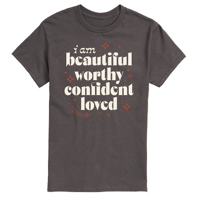 Men's Instant Message Beautiful Worthy Confident Loved Long Sleeve Graphic T-Shirt - Heather Charcoal - 3 X-Large