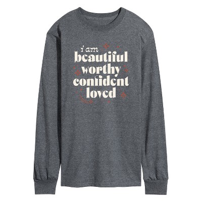 Men's Instant Message Beautiful Worthy Confident Loved Short Sleeve Graphic T-Shirt - Charcoal - 3 X-Large