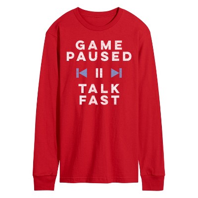 Instant Message - Game Paused Talk Fast - Men's Short Sleeve Graphic T-Shirt - Instant Message is an online specialty fashion retailer for everything from funny to inspiring printed apparel. We offer a range of garments from long sleeve and relaxed fit t-shirts, to lightweight french-terry long sleeve shirts, hoodies and graphic print pullovers. Our products feature fun and trendy graphics that are perfect for any occasion and also make great gifts.