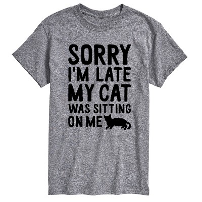 Men's - Instant Message - Sorry I'm Late Cat Sitting On Me Short Sleeve Graphic T-Shirt - 1 of 4