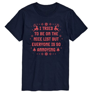 Instant Message - Tried To Nice List - Men's Long Sleeve Graphic T-Shirt - Instant Message is an online specialty fashion retailer for everything from funny to inspiring printed apparel. We offer a range of garments from long sleeve and relaxed fit t-shirts, to lightweight french-terry long sleeve shirts, hoodies and graphic print pullovers. Our products feature fun and trendy graphics that are perfect for any occasion and also make great gifts.