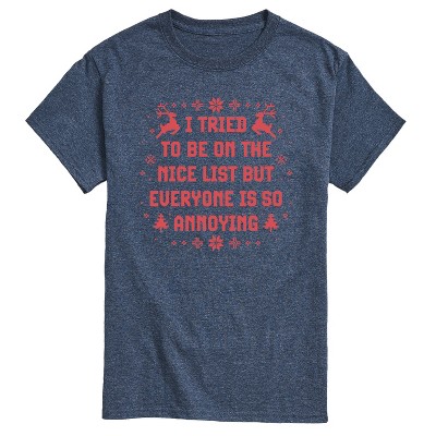 Instant Message - Tried To Nice List - Men's Long Sleeve Graphic T-Shirt - Instant Message is an online specialty fashion retailer for everything from funny to inspiring printed apparel. We offer a range of garments from long sleeve and relaxed fit t-shirts, to lightweight french-terry long sleeve shirts, hoodies and graphic print pullovers. Our products feature fun and trendy graphics that are perfect for any occasion and also make great gifts.