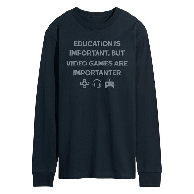 Men's Instant Message Video Games Not Violent Long Sleeve Graphic T-Shirt - Navy - Small