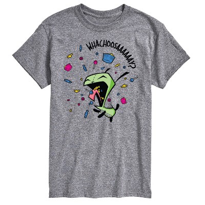 Invader ZIM - Invade The World - Men's Short Sleeve Graphic T-Shirt - Prepare for alien mischief with Invader Zim graphic apparel, featuring bold, offbeat designs that bring the chaos of this cult classic to life. Starring Zim, GIR, Dib, and other fan favorites, each piece captures the series’ dark humor, quirky animation style, and satirical take on alien invasions. Perfect for fans of outrageous extraterrestrial antics and nostalgic Nickelodeon weirdness.