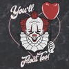 This Valentine's Day, a chilling reminder echoes through the shadows: they all float down here, and soon, you'll float too! This men's Float With Me t-shirt features a smiley Pennywise holding a red heart-shaped balloon with the phrase "You'll Float Too!". The evil clown Pennywise is back to terrify the town of Derry, Maine, and the Losers' Club will need one of these officially licensed IT designs to survive! This romantic season is set to blend romance with spine-chilling dread, promising an unforgettable experience filled with both heart and horror!