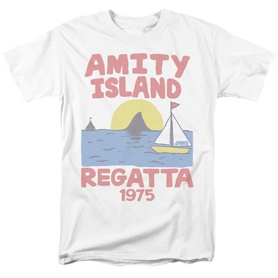 You're going to need a bigger boat for the Jaws T-Shirt. Steven Spielberg's 1975 blockbuster film is celebrated with this retro Jaws tee that is perfect for any fan of Martin Brody, Qint, or the man-eating great white shark that is terrifying the citizens of Amity Island this summer!