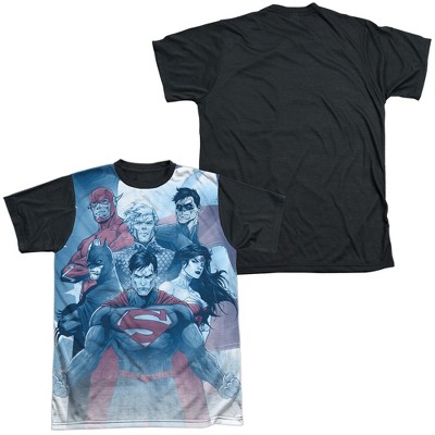 Men's JLA League Of Heroes Short Sleeve Costume T-Shirt, White Front, Black Back, Small
