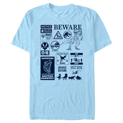 Get ready for a new era of dinosaur with an officially licensed Jurassic World: Dominion Men's Graphic T-Shirt. The claws are coming out in the blockbuster sequel film, Jurassic World: Dominion, where dinosaurs and humans must learn to live side-by-side. Team up with iconic Jurassic Park heroes as they attempt to survive a world overrun with new predators. This classic men's tee features three dinosaur-inspired travel badges like "Bend, OR" and "Big Rock National Park" in blue down the front.