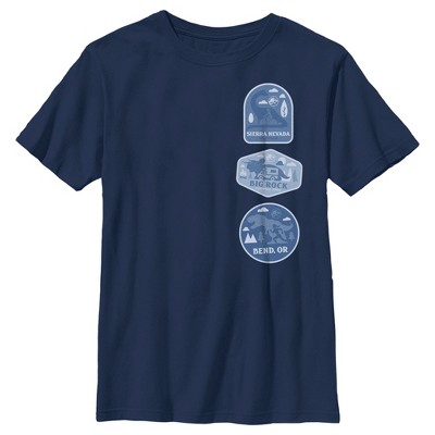 Get ready for a new era of dinosaur with an officially licensed Jurassic World: Dominion Men's Graphic T-Shirt. The claws are coming out in the blockbuster sequel film, Jurassic World: Dominion, where dinosaurs and humans must learn to live side-by-side. Team up with iconic Jurassic Park heroes as they attempt to survive a world overrun with new predators. This classic men's tee features three dinosaur-inspired travel badges like "Bend, OR" and "Big Rock National Park" in blue down the front.