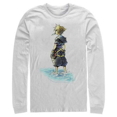 Get ready for the exciting world of Disney's Kingdom Hearts video games! Set in a vast array of Disney and Pixar worlds, Kingdom Hearts features the fantasy-driven story of a young boy and his incredible journey! Discover the mysteries surrounding the legendary Keyblade and protect your friends from an evil force with this new officially-licensed Kingdom Hearts Hero by the Shore Men's Graphic Long Sleeve T-Shirt featuring Sora at the beach enjoying the view in a cool art style printed across the front.