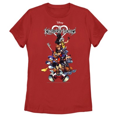 Get ready for the exciting world of Disney's Kingdom Hearts video games! Set in a vast array of Disney and Pixar worlds, Kingdom Hearts features the fantasy-driven story of a young boy and his incredible journey! Discover the mysteries surrounding the legendary Keyblade and protect your friends from an evil force with this new officially-licensed Kingdom Hearts Stained Glass Art Men's Graphic T-Shirt featuring the iconic red stained glass from the series with Sora, Riku, Kairi, Donald, and Goofy printed on it!