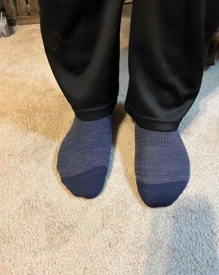 A: These socks have a no-show cut with an adaptive design for a comfortable fit.