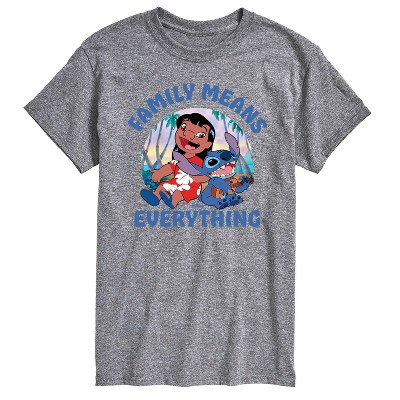 Lilo & Stitch - Family Means Everything - Men's Long Sleeve Graphic T-Shirt - Celebrate the ohana with Lilo & Stitch graphic apparel, blending new visuals with classic heartwarming moments featuring Lilo, Stitch, and the bonds of family.