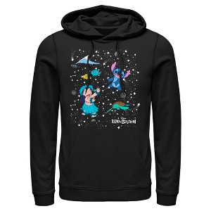 Ohana means family, and family means no pullover gets left behind! Find the perfect style with this officially licensed Men's Disney Lilo & Stitch Aloha From Space Graphic Hoodie! This cute design features Lilo in her hula outfit and a smiling Stitch out in space with the stars and constellations, and the movie logo printed below. Celebrate a certain alien, otherwise known as Experiment 626 this year with new hilarious apparel from the movie!