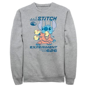 Ohana means family, and family means no sweatshirt gets left behind! Find the perfect style for your family with this officially licensed Men's Disney Lilo & Stitch Armed and Ready Graphic Crewneck Sweatshirt! This fun design features a graphic of Stitch ready for action with his blasters along with: "Stitch Experiment 626" in blue across the front. Celebrate a certain alien, otherwise known as Experiment 626 with new fabulous apparel from the incredible movie!