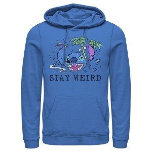 Ohana means family, and family means no tee gets left behind! Find the perfect style for your family with this new Men's Disney Lilo & Stitch Stay Weird Graphic Hoodie! This fun design features Stitch in a weird trippy style with palm trees and stars and the phrase "Stay weird" printed below in black. Celebrate a certain alien, otherwise known as Experiment 626 in style with new hilarious apparel for the whole family from the movie!