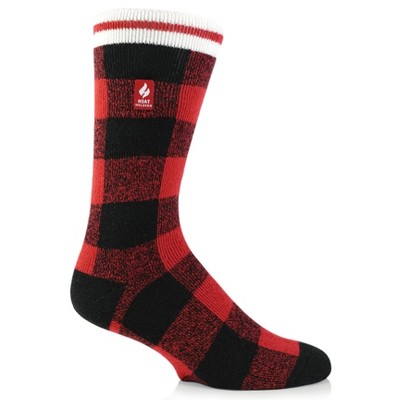 Keep feet warm on the coldest of days and pull on this pair of buffalo plaid, medium thickness, crew length Heat Holders® LITE™ for men, the warmest thermal sock.
