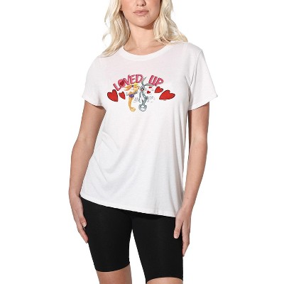 Men's Looney Tunes Bugs And Lola Loved Up Valentine's Day T-Shirt, White, 2X Large