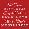 • Strut your stuff with this stylish new Christmas men's t-shirt that is perfect for the holidays! Featuring the text: "Hot cocoa, mistletoe sugar cookies snow days winter boots gingerbread" across the front.