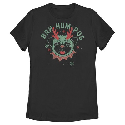 • Strut your stuff with this stylish new Christmas men's t-shirt that is perfect for the holidays! Featuring the face of an adorable pug wearing reindeer antlers surrounded by snowflakes and the phrase: "Bah hum pug" in distressed lettering across the front.