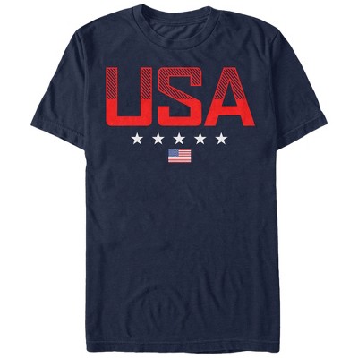 Show your American pride with the Lost Gods USA Stripe Design Navy Blue T-Shirt! A print on the front of this classic blue USA shirt features "USA" with a line of stars beneath it and the American flag.