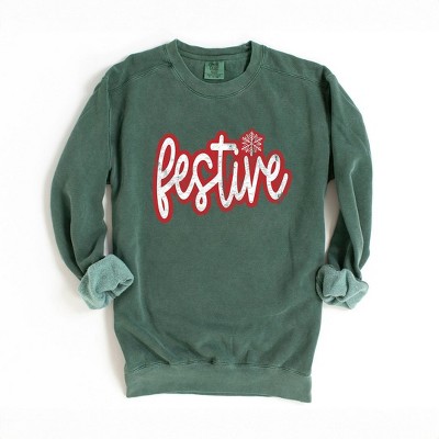 Sink your teeth into some holiday spirit with the Lost Gods Festive T Rex Santa Claus Green Sweatshirt! A tyrannosaurus rex wearing a Santa hat and a wreath around his neck is surrounded by snowflakes printed on the front of this awesome green Christmas sweatshirt.