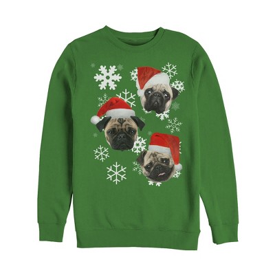 The classic ugly Christmas sweater just got an adorable makeover thanks to the Lost Gods Pug in Christmas Light Green Sweatshirt! A pug wearing a Santa hat and wrapped in Christmas lights is printed next to snowflakes on the front of this festive green Christmas sweatshirt.