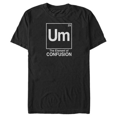 • Strut your stuff with this stylish new men's big & tall t-shirt that is perfect for every occasion! Featuring white text that reads "Um" inside a square, referring to the Table of Elements with the quote "The Element of Confusion" below.