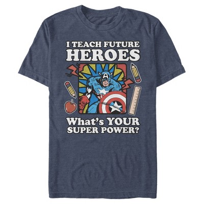 Men's Marvel #1 Dad Cartoon Captain America T-Shirt - Navy Blue Heather - Large