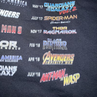 If you are more than a regular old Marvel fan, then you need the Marvel 10th Anniversary More Than a Fan Men's Lightweight Hoodie! This awesome front-and-back sweatshirt shows off all the Marvel movie releases from Iron Man to the Avengers Infinity War.